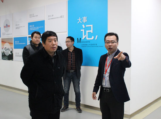 2016年1月29日下午,鹤壁市常务副市长史全新、鹤壁市市委秘书长李杰心、鹤壁市发改委主任潘向东、大用集团董事长王红民、大用集团总经理吴恒亮一行人莅临云和数据考察参观。